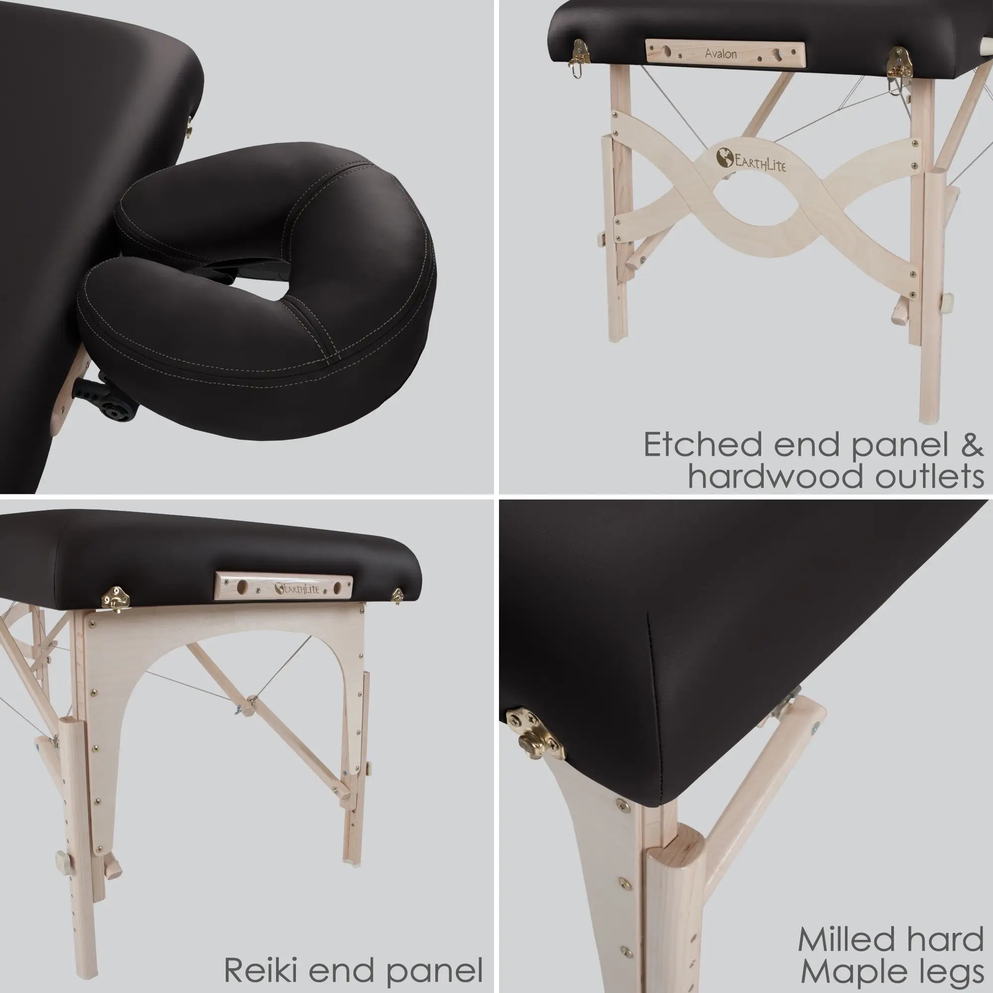 With handcrafted construction, premium materials, and a lifetime limited warranty – the Avalon XD is a perfect match for the serious massage professional. Precision crafted from solid hardwood Maple for strength and durability. The half Reiki / half standard endplates provide unparalleled balance and stability while offering easy client access. Combined with Earthlite’s innovative Flex-Rest™ Self Adjusting Facecradle with Form-Fit™ memory cushion, and a single pocket carry case, the Avalon XD is a complete professional package designed to last a lifetime.